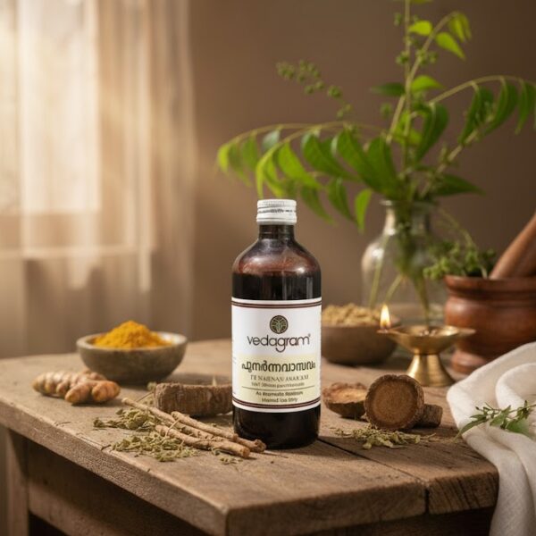 Punarnavasavam is an Ayurvedic herbal tonic that supports liver and kidney health, reduces water retention, improves digestion, and promotes natural detoxification for overall wellness.