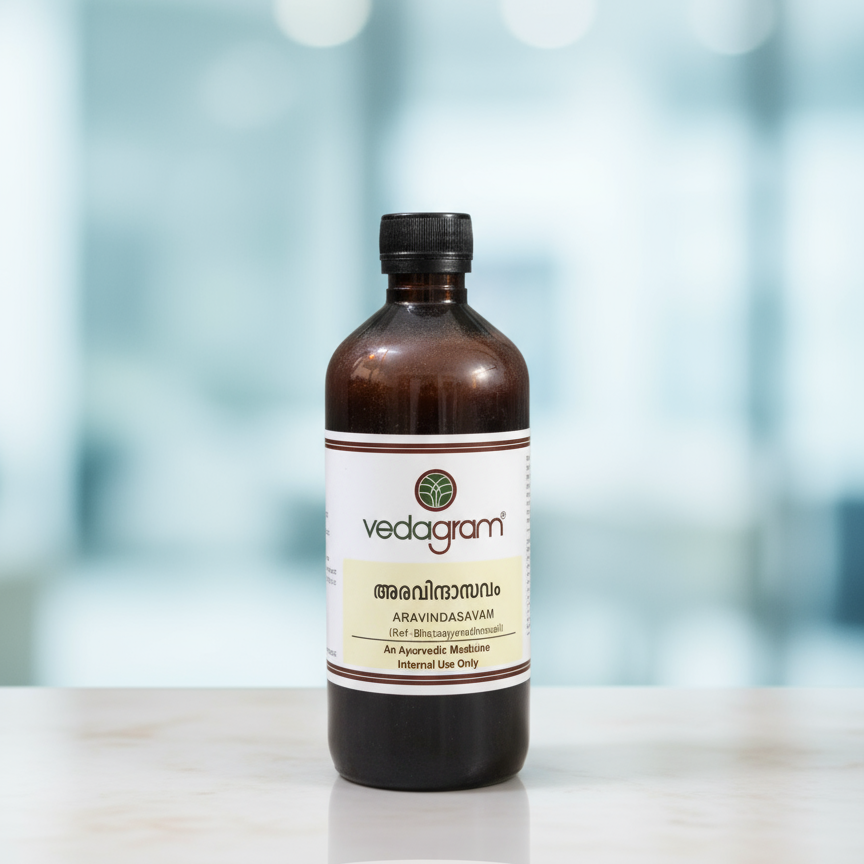 Aravindasavam is a classical Ayurvedic tonic formulated especially for children to support healthy growth, digestion, and overall development. It is enriched with herbs like Aravinda (lotus) that help improve appetite, strength, and immunity.