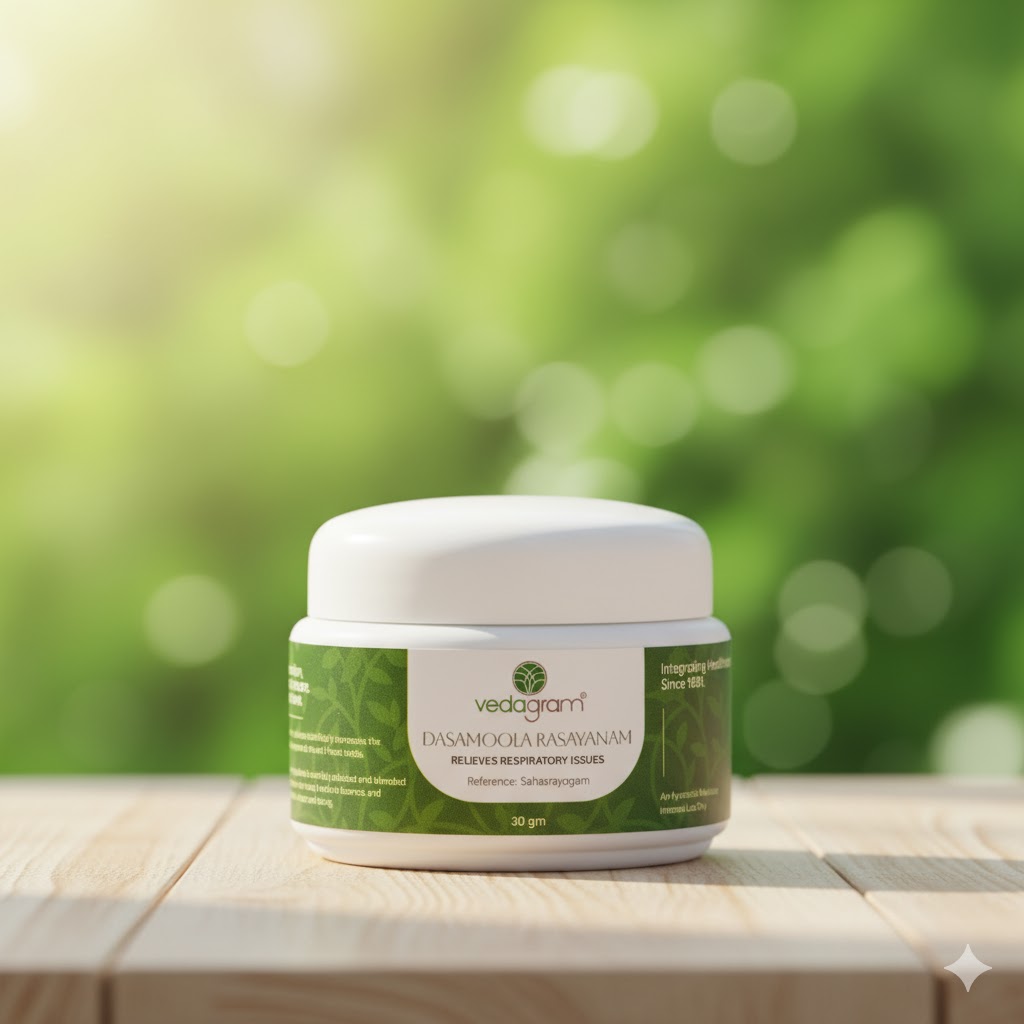 Dashamoola Rasayanam is a traditional Ayurvedic formulation prepared with the Dashamoola group of roots to support respiratory health, improve digestion, and promote overall rejuvenation. It helps reduce fatigue, strengthens the body, and supports natural healing.