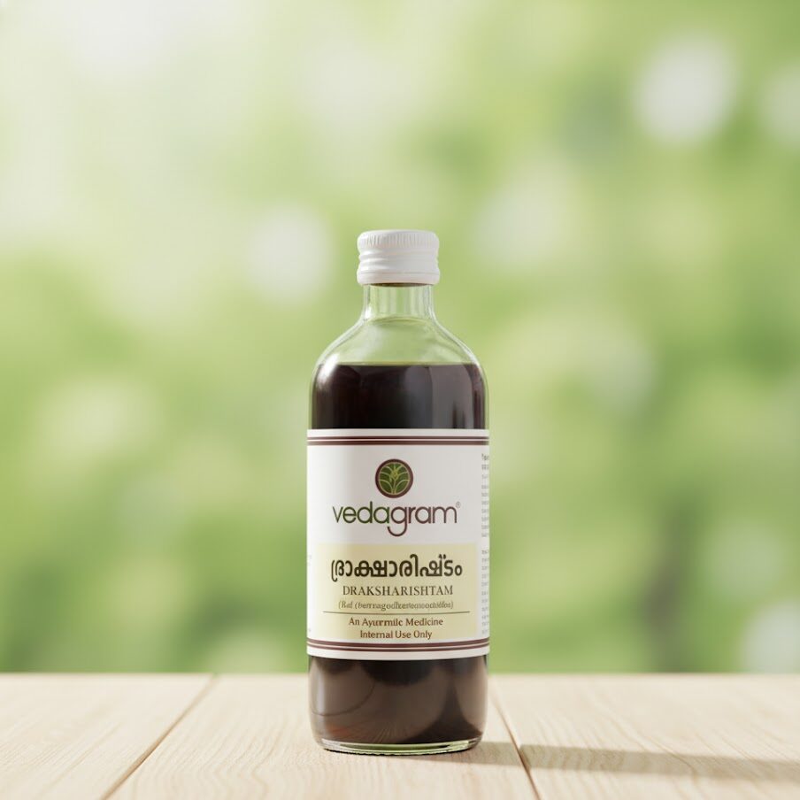 Draksharishtam is an Ayurvedic herbal tonic made from raisins and digestive herbs to support digestion, improve appetite, and boost energy. It helps relieve constipation, enhances strength, and promotes overall wellness.