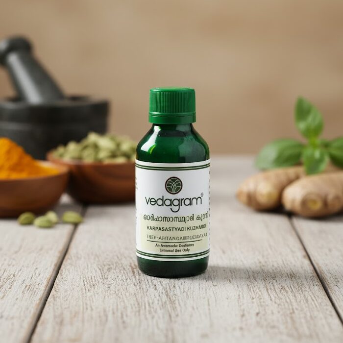 Karpasasthyadi Kuzhambu is a traditional Ayurvedic oil formulated to support nerve and muscle health. It is commonly used for conditions involving stiffness, numbness, joint pain, frozen shoulder, and muscular weakness. The oil helps improve mobility and provides soothing relief from discomfort.