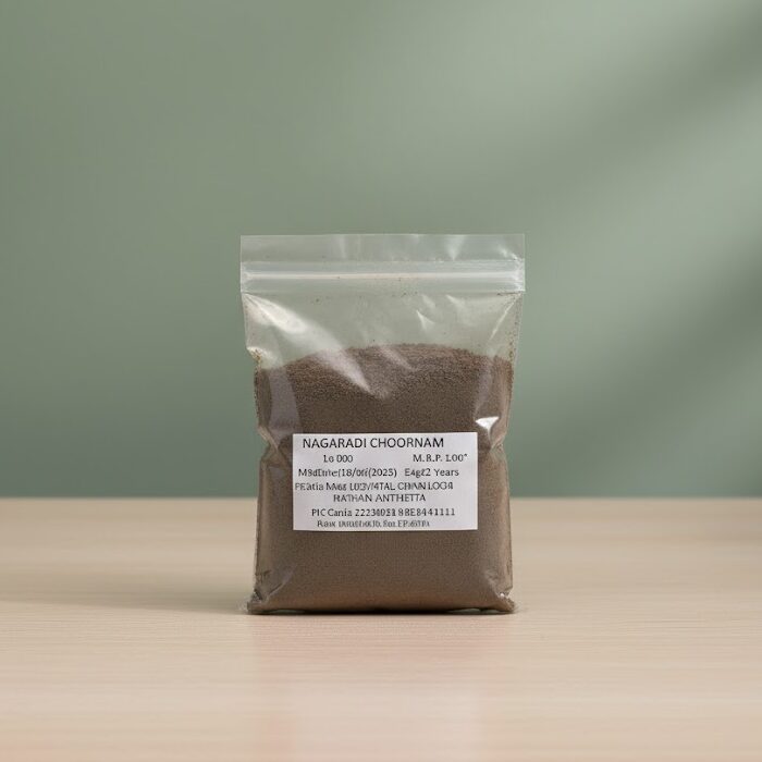 Nagaradi Choornam is a traditional Ayurvedic formulation that helps relieve pain, swelling, and inflammation. Made from pure herbal ingredients, it supports natural healing and recovery from injuries.